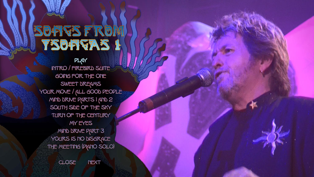 designer and Yes collaborator Roger Dean and the setlist features tracks from across the band s career including an extensive acoustic section (tracks 11 18) and some tracks that have rarely been performed live. Part Two contains 70 minutes of highlights from a very different concert on the same tour filmed at Estival in Lugano, Switzerland. This outdoor concert sees a stripped down stage and full on rock versions of the acoustic tracks from Tsongas whilst the crowd wield a multitude of umbrellas against the pouring rain, which is clearly not preventing them having a great time!