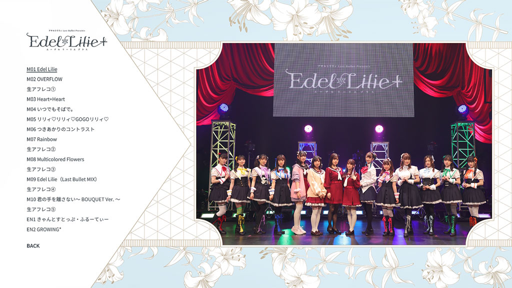 Blu-rayには2021年7月3日に開催されたアサルトリリィ Last Bullet Presents『Edel Lilie+』夜の部の映像を収録。