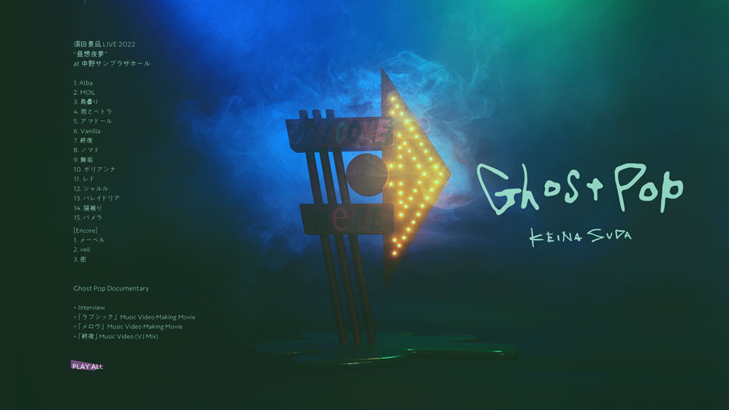 ライブをフルサイズで収録、さらに今作の為に制作した「Ghost Pop Documentary」として須田景凪本人のインタビューのほか、