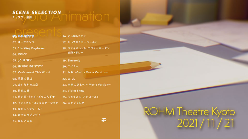 2021年11月20日(土)・21日(日)にロームシアター京都にて開催された、「第5回京都アニメーションファン感謝イベントKYOANI MUSIC FESTIVAL ―感動を未来へ―」の模様を収録したBlu-rayの発売が決定!