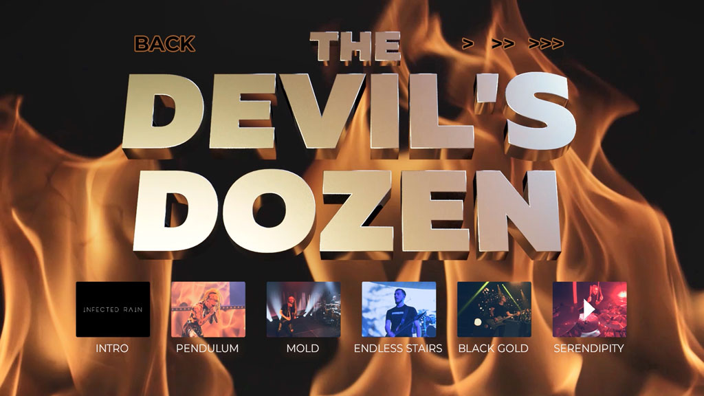 Dive deep into the history of INFECTED RAIN like never before with a breathtaking full show spanning the past 15 years of the band’s history with incredible production and special effects – including rare song material! Featuring songs such as ‘Freaky Carnival’, taken of their 86 -album from 2017, and stage warrantors such as ‘The Earth Mantra’ and ‘Storm’ (both released on their critically-acclaimed break-out album Endorphin ), the release showcases the band’s metamorphosis throughout the years and celebrates INFECTED RAIN’s impressive career, songwriting and live skills to date. The Devil’s Dozen electrifies with an otherworldly live momentum by one of the most impressive modern bands within the extreme metal scene; unleashing resonating riffs, cosmic electronics, progressive grooves and Lena’s treasure trove of vocal abilities. The band’s upcoming DVD/BLURAY is a must-have for every modern metal fan, as it demonstrates ultramodern brutality without sacrificing emotion and melody, performed live by a top-notch, high-voltage and enthralling live act!”