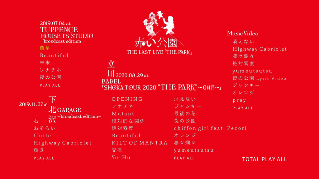 2021年5月28日(金)をもって解散した赤い公園の東京・中野サンプラザでのラストライブ“赤い公園 THE LAST LIVE 「THE PARK」”の映像商品が2021年9月29日(水)にリリース!
