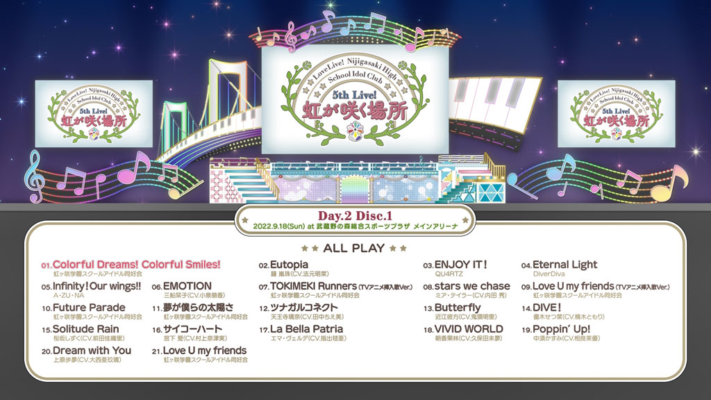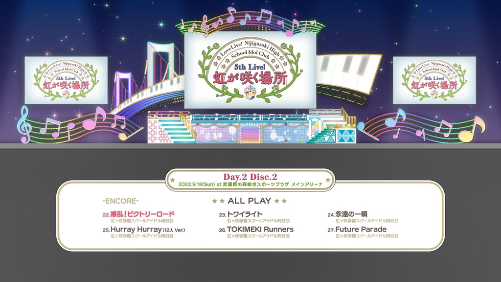 3. Level Oops! Adventures (Next TOKIMEKI公演DAY. 1日替わり曲)(虹ヶ咲学園スクールアイドル同好会)/NEO SKY, NEO MAP! (振り返り映像)(虹ヶ咲学園スクールアイドル同好会)
