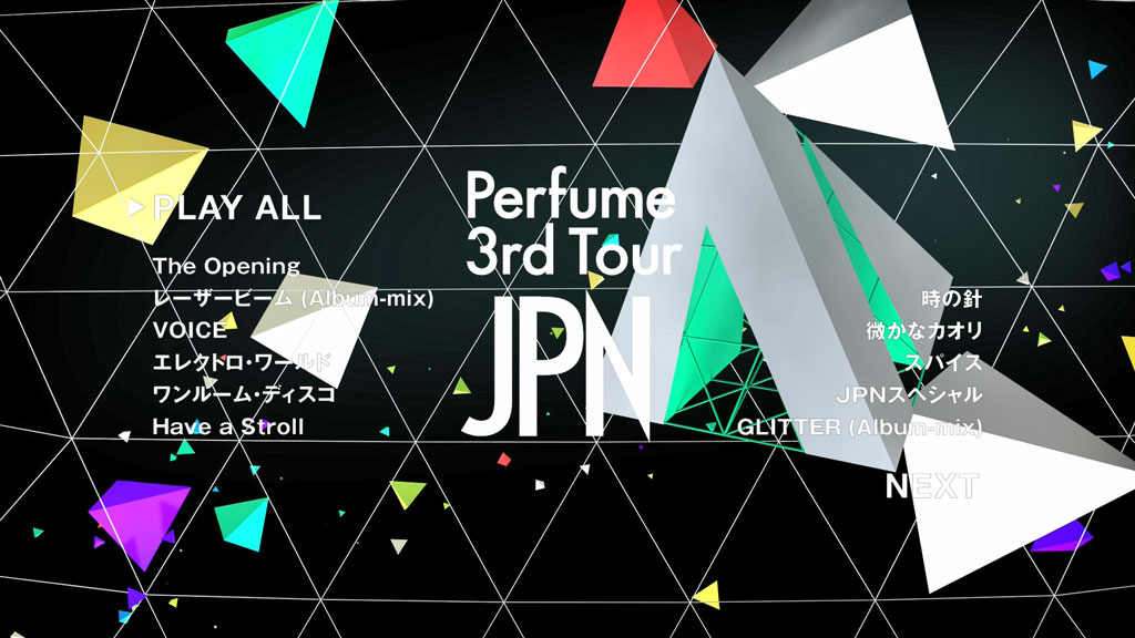●2012年8月1日発売 DVD “Perfume 3rd Tour 「JPN」”の通常盤(UPBP-1001)と同内容。