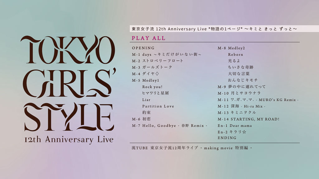 洋題:TOKYO GIRLS` STYLE 12TH ANNIVERSARY LIVE *MONOGATARI NO 1 PAGE* -KIMI TO KITTO ZUTTO-