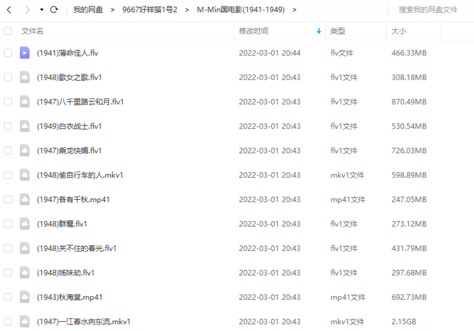 本资源为民国时期1941-1949年68部老电影大合集打包[FLV/DAT/MKV/MP4]百度云网盘下载,本次资源格式为FLV+DAT+MKV+MP4,做压缩包处理,避免资源丢失,请先保存下载再解压便可播放。(保存到自己网盘后,重命名,把后面的 1 去掉即可播放)