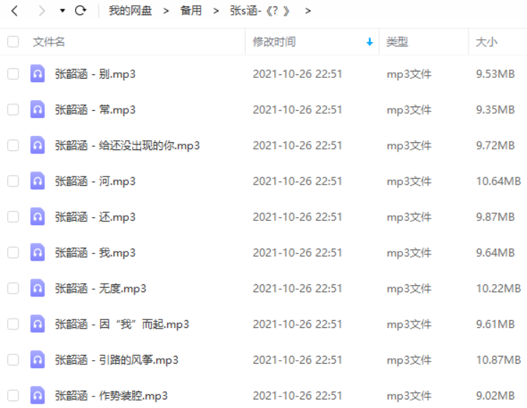 本资源为张韶涵第十张专辑《?》10首歌曲合集[高音质MP3]百度云网盘下载,《?》专辑歌曲格式为高音质MP3,专辑做压缩包处理,会员下载解压便可播放试听。