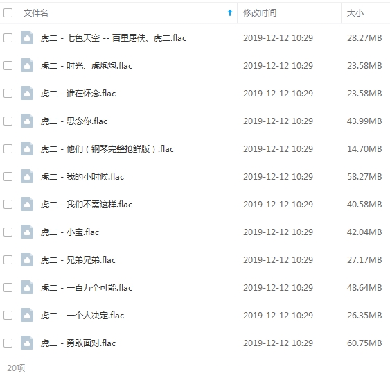 音乐专辑:虎二发烧歌曲合集-20首单曲