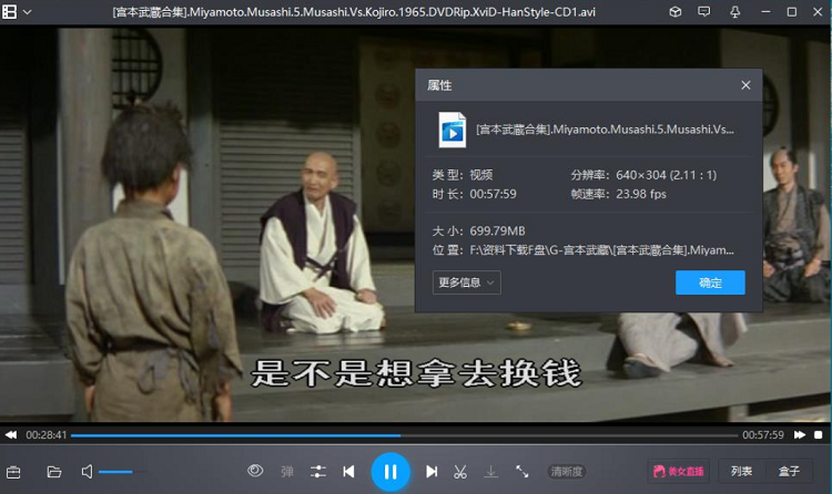 本资源为日本经典武士电影《宫本武藏》1961-1965年5部日语中文字幕合集[AVI]百度云网盘下载,本次资源格式为AVI,做压缩包处理,避免资源丢失,请先保存下载再解压便可播放。
