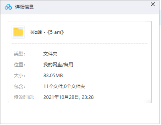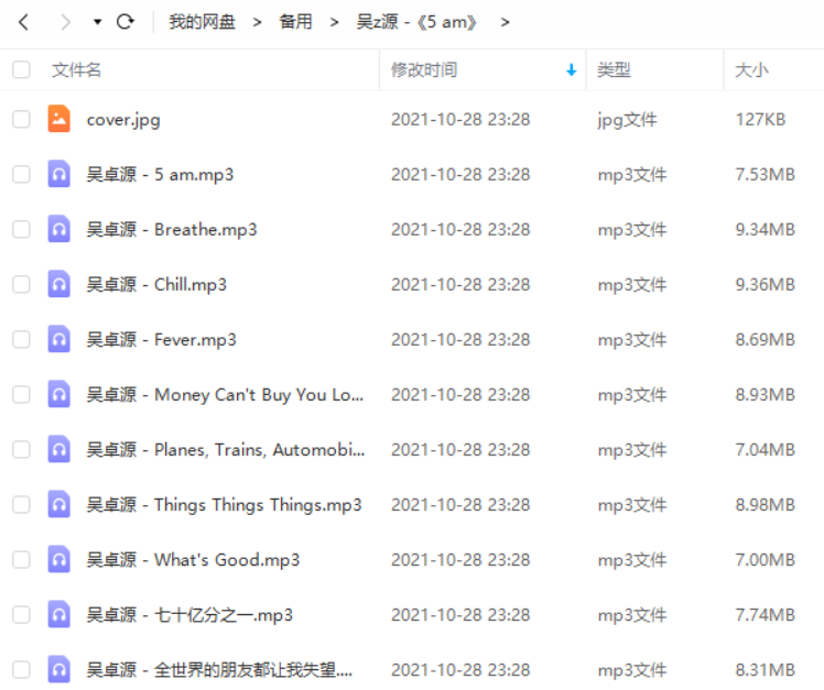 本资源为吴卓源个人第三张专辑《5 am》10首单曲[高音质MP3]百度云网盘下载,《5 am》专辑歌曲格式为高音质MP3,专辑做压缩包处理,会员下载解压便可播放试听。