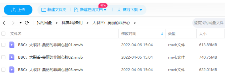 本资源为BBC《大裂谷:美丽的非洲心脏》纪录片3集中文字幕合集[RMVB]百度云网盘下载,本次资源格式为RMVB,做压缩包处理,避免资源丢失,请先保存下载再解压便可播放。