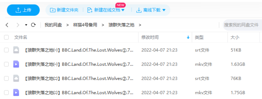 本资源为BBC《狼群失落之地》纪录片2集英语中文字幕超清合集[MKV]百度云网盘下载,本次资源格式为MKV,做压缩包处理,避免资源丢失,请先保存下载再解压便可播放。