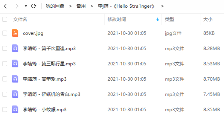 本资源为李靖筠个人小型专辑《Hello Stranger》精选5首歌曲[高音质MP3]百度云网盘下载,《Hello Stranger》专辑歌曲格式为高音质MP3,专辑做压缩包处理,避免资源丢失,请先保存下载在解压便可播放试听。