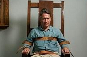 电椅,由爱迪生发明来说明“交流电之害”,使用天然海绵泡盐水盖头,头和脚连接电极(2400+伏特,照明电压的10倍以上),这种方法经常需要多次电击才能保证行刑成功。