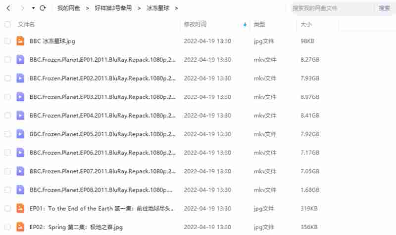 本资源为BBC纪录片之《冰冻星球》1-8集英语中文字幕超清合集[MKV]百度云网盘下载,本次资源格式为MKV,做压缩包处理,避免资源丢失,请先保存下载再解压便可播放。